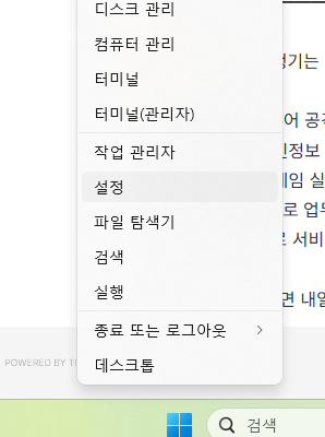 파란색에서 오른쪽 누르고 설정에 갑니다.