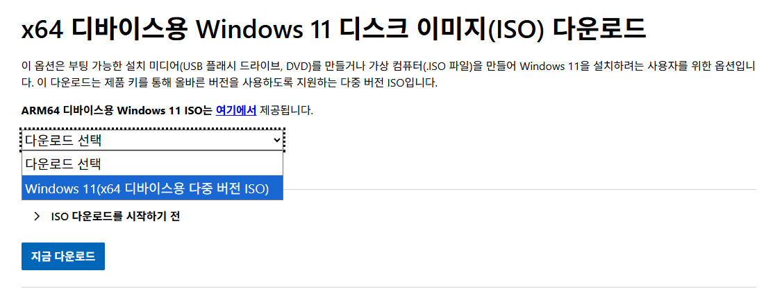 디스크이미지다운로드를 누르고